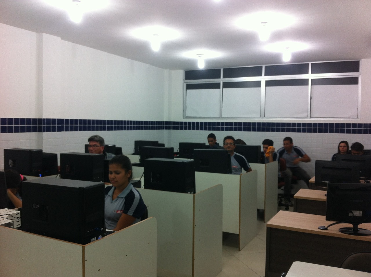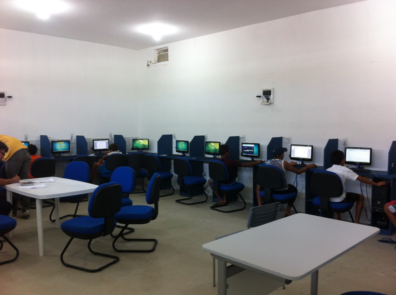 Atualmente o laboratório conta com 19 computadores, onde os alunos assistem aulas interativas como: